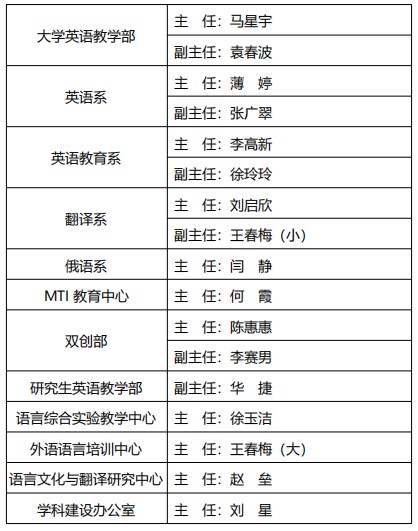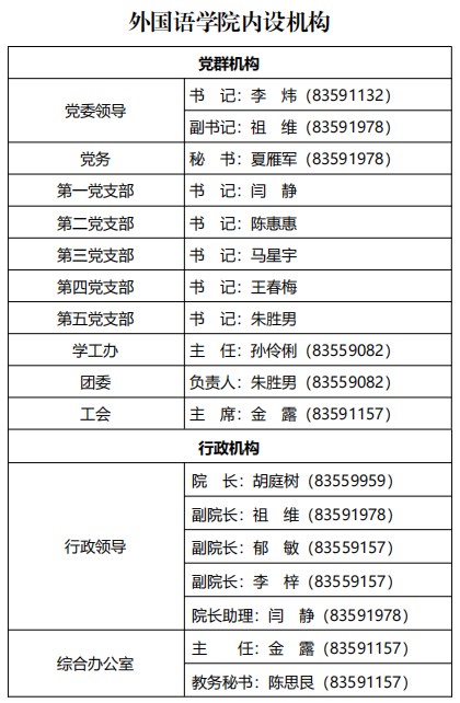 外国语乐鱼(中国)内设机构