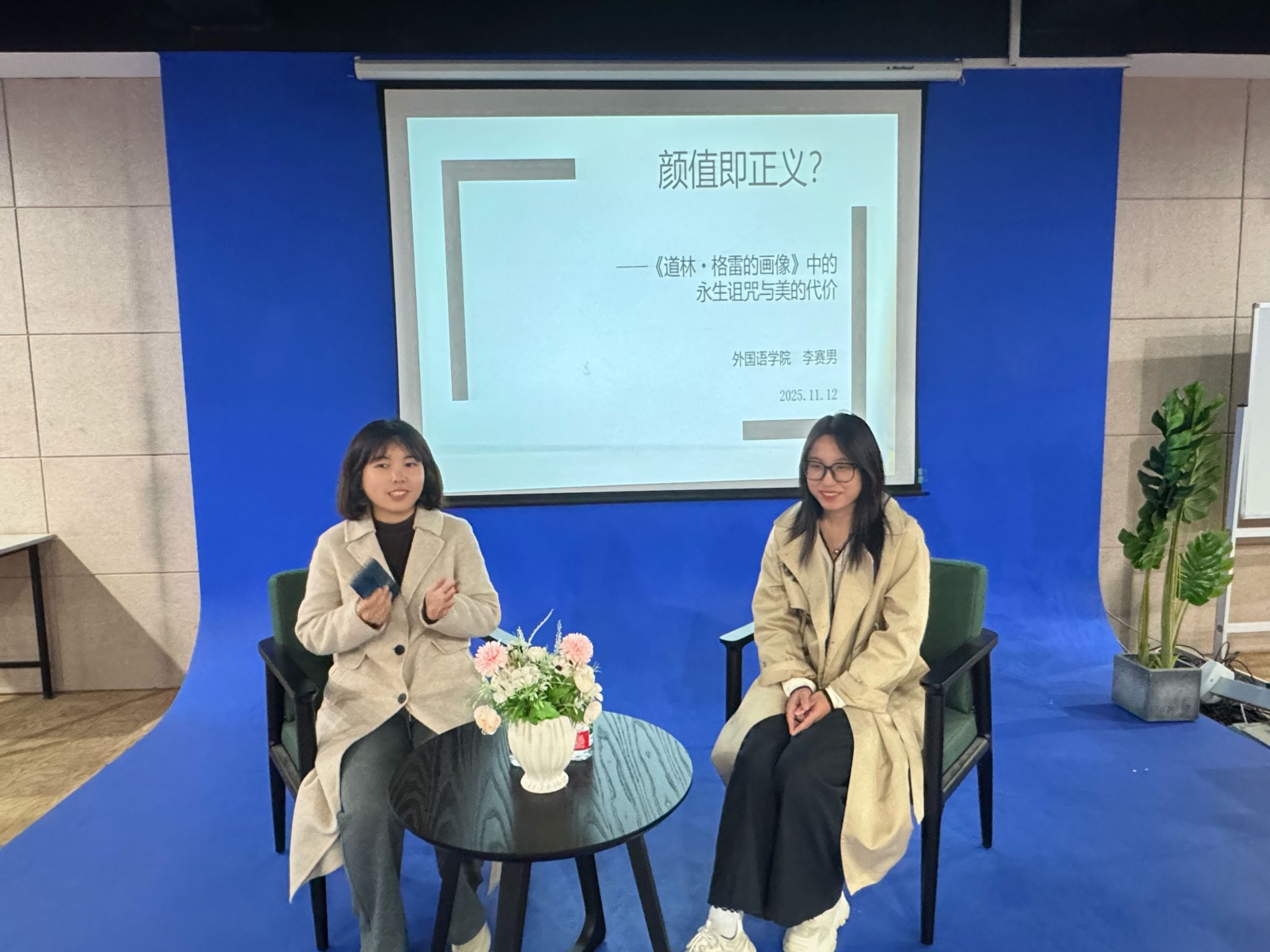 2025年11月12日19:00,外国语乐鱼(中国)于品学楼一楼虚拟演播厅举办了以“颜值即正义?——《道林·格雷的画像》中的永生诅咒与美的代价”为题的“清如许”人文经典悦读讲座第二十期。本次讲座邀请外国语乐鱼(中国)英语教育系教师李赛男担任主讲人,俄语系教师程文强博士担任主持人,乐鱼(中国)大一、大二年级学生活动。