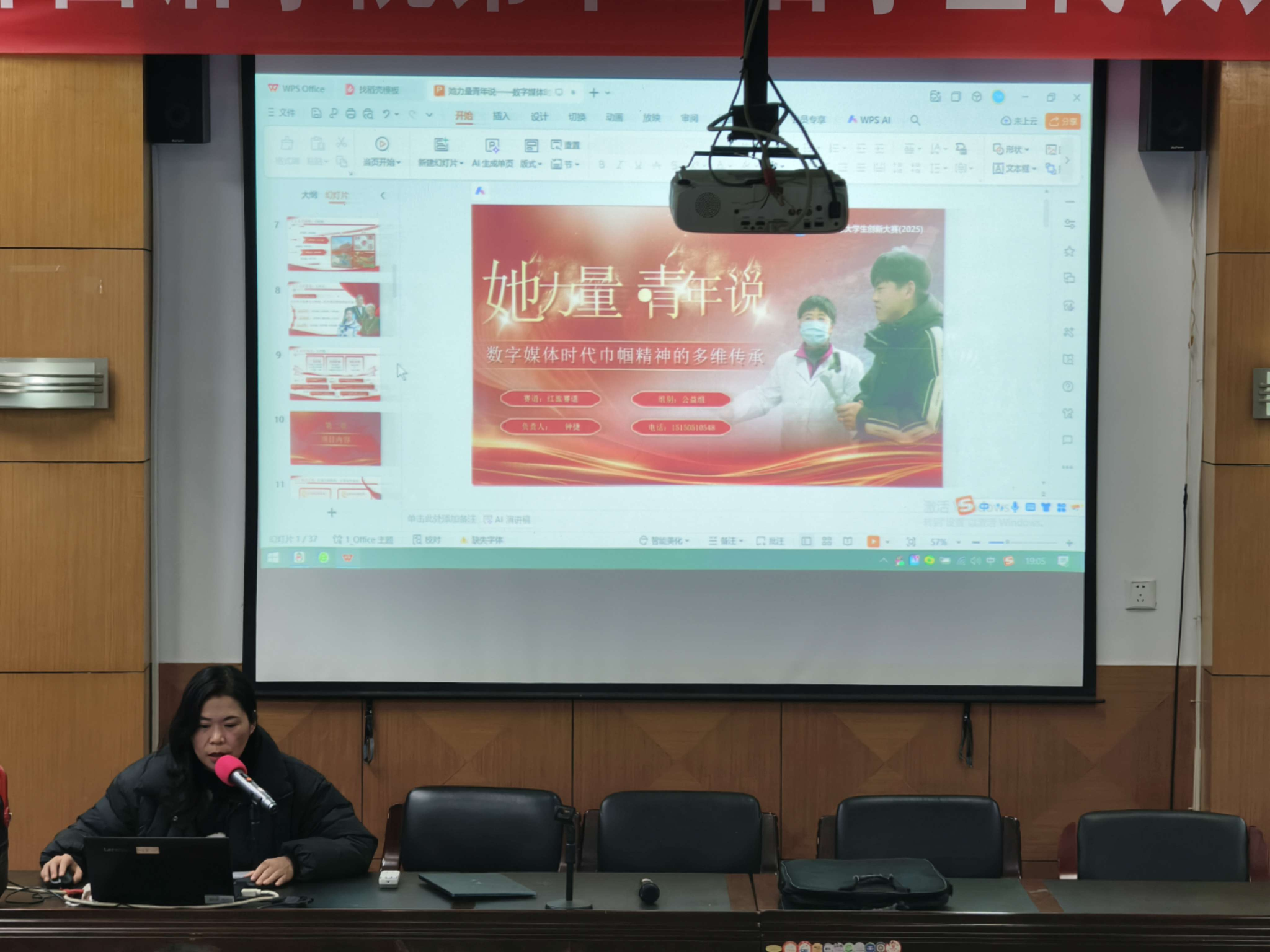 郁敏围绕巾帼项目展开宣讲,她首先讲述了项目取得的各项荣誉,并指出其在宣传巾帼精神的重要意义。接着,她从中国共产党人精神谱系切入,指出不同时期的巾帼贡献,巾帼精神不仅在时代凝聚中发挥重要作用,还在社会、家庭、个人层面都是时代需求。随后,她提倡要“双线赋能”巾帼产品,指出项目的核心竞争力,并在此基础上构建了“巾帼”+IP驱动的商业模式。在此蓝图下,巾帼项目在实践方面有了显著成效。最后,郁敏详细介绍了项目团队成员并指出巾帼项目未来的发展方向,她发出了“她力破茧,梦启新章”的号召,鼓励各入党积极分子参与项目,发挥积极能动性,领悟巾帼精神。
