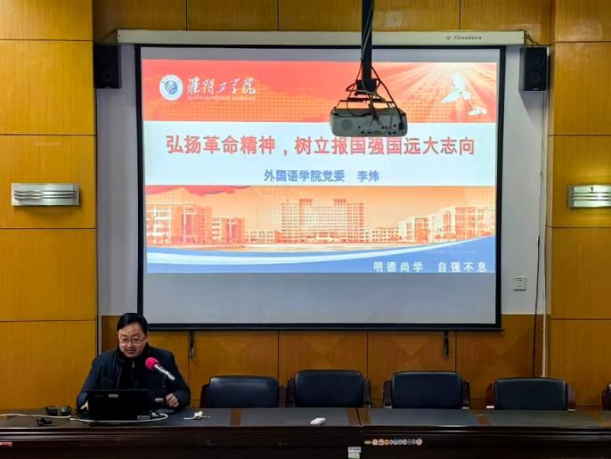 2025年12月11日,外国语乐鱼(中国)在品学楼2210开展了“弘扬革命精神,树立报国强国远大志向”的专题党课,本次党课由外国语乐鱼(中国)党委书记李炜主讲,外国语乐鱼(中国)入党积极分子参加了党课学习。