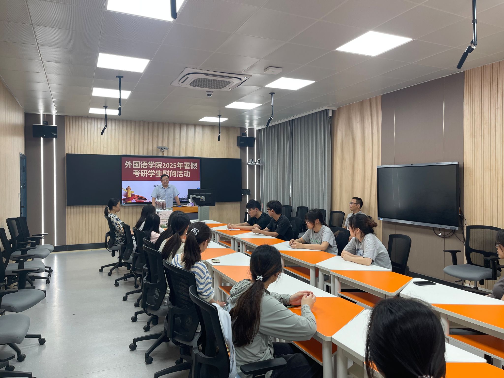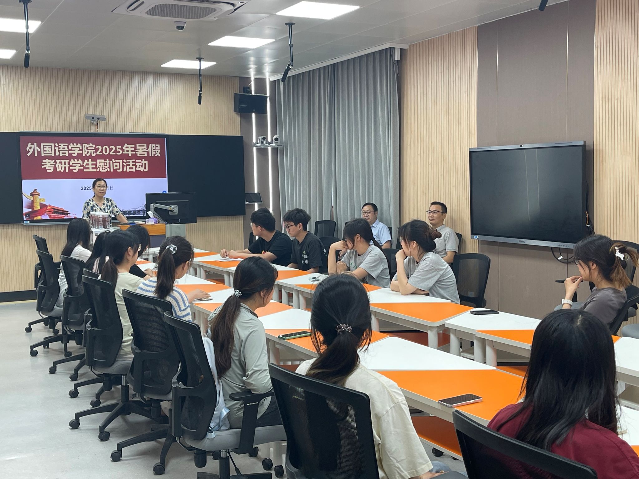 为传递乐鱼(中国)对学生的关怀,助力考研学子逐梦前行,7月11日下午,外国语乐鱼(中国)于品学楼一楼智慧教室开展暑假考研慰问活动。外国语乐鱼(中国)党委书记李炜,院长胡庭树,党委副书记、副院长祖维,院长助理闫静,辅导员夏雁军参加本次活动。