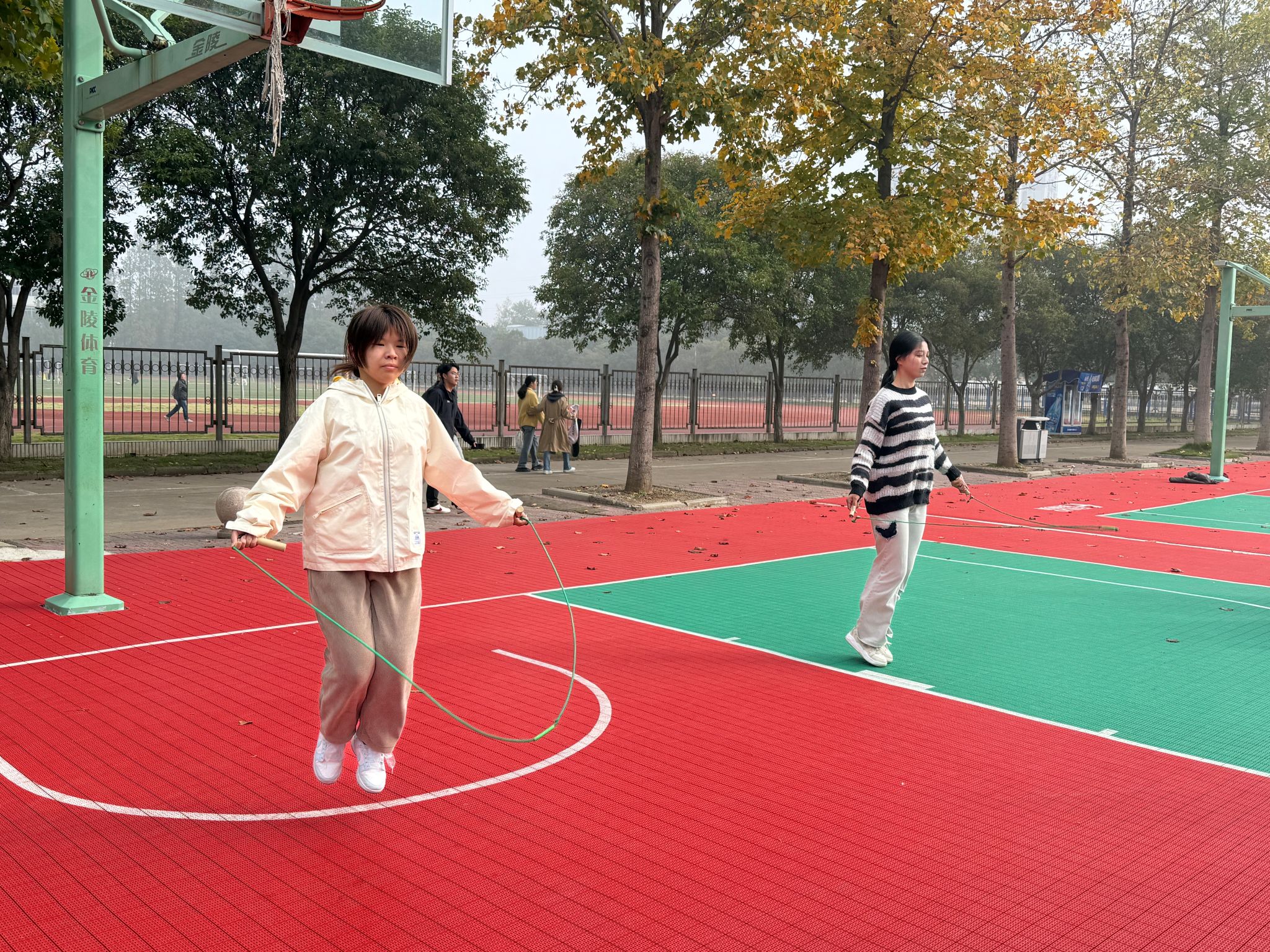 操场另一侧,跳绳选手们也正进行着火热的比赛。他们身体轻盈灵活,双脚快速交替,跳绳在他们手中飞舞旋转,发出“呼呼”的风声,让人眼花缭乱。每一次成功的跳跃,都是对速度与耐力的完美诠释。场边观众的呐喊声、计数声此起彼伏,将比赛氛围一次次推向高潮。