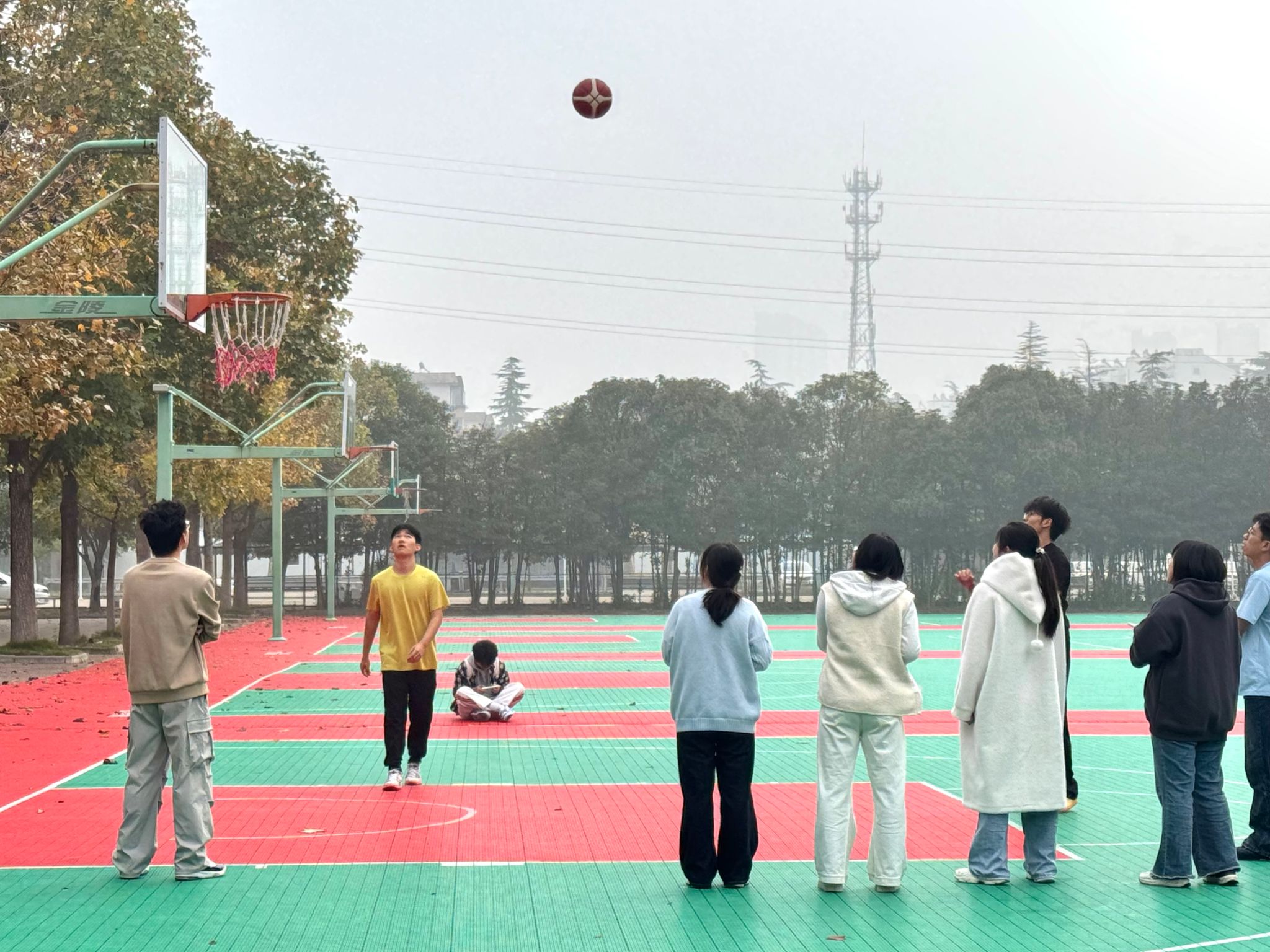 篮球赛场上,选手们摩拳擦掌,跃跃欲试。他们目光如炬,紧盯篮筐,运球、屈膝、起跳、出手,动作一气呵成,在对力量精准把握下,篮球在空中划过一道道优美的抛物线。当篮球落入篮筐的一瞬,场外观众们爆发出热烈的欢呼声。现场气氛紧张而友好,充分展现了选手们精湛的球技和沉着冷静的心态。