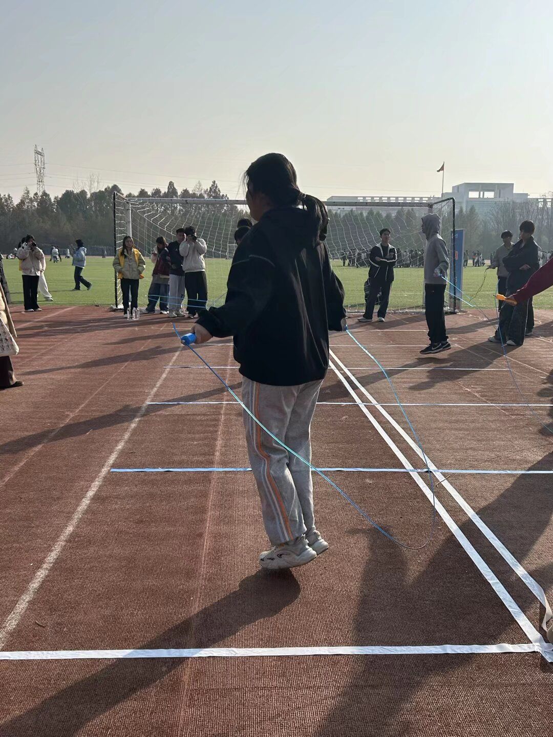 随着裁判的哨声响起,运动员们振臂挥绳,脚尖轻点间绳花翻飞,手腕疾转中节奏铿锵,每一次腾跃都诠释着热血与力量。