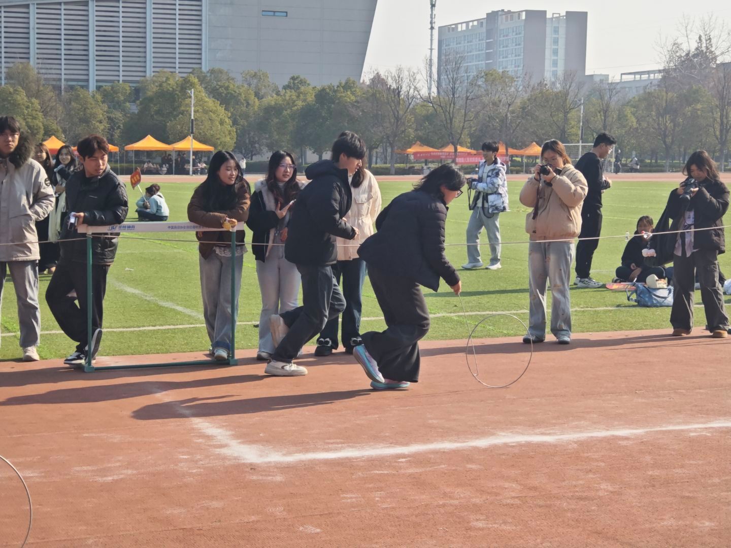 选手们弓步前倾,推杆轻拨,指尖稳控方向。一个个铁环在选手们的手中轻快向前,叮当碾过赛道,仿佛儿时吟唱的歌谣,承载着童年的欢乐与青春的活力。运动员们转身、加速间身姿矫健,每一次精准操控都藏着热爱与韧劲,燃动传统项目的热血力量。