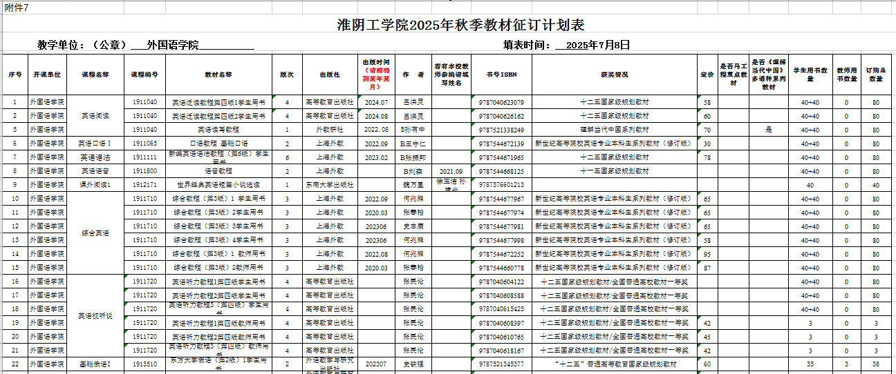 乐鱼网页版外国语乐鱼(中国)2025年秋季教材征订计划表-新生教材公示