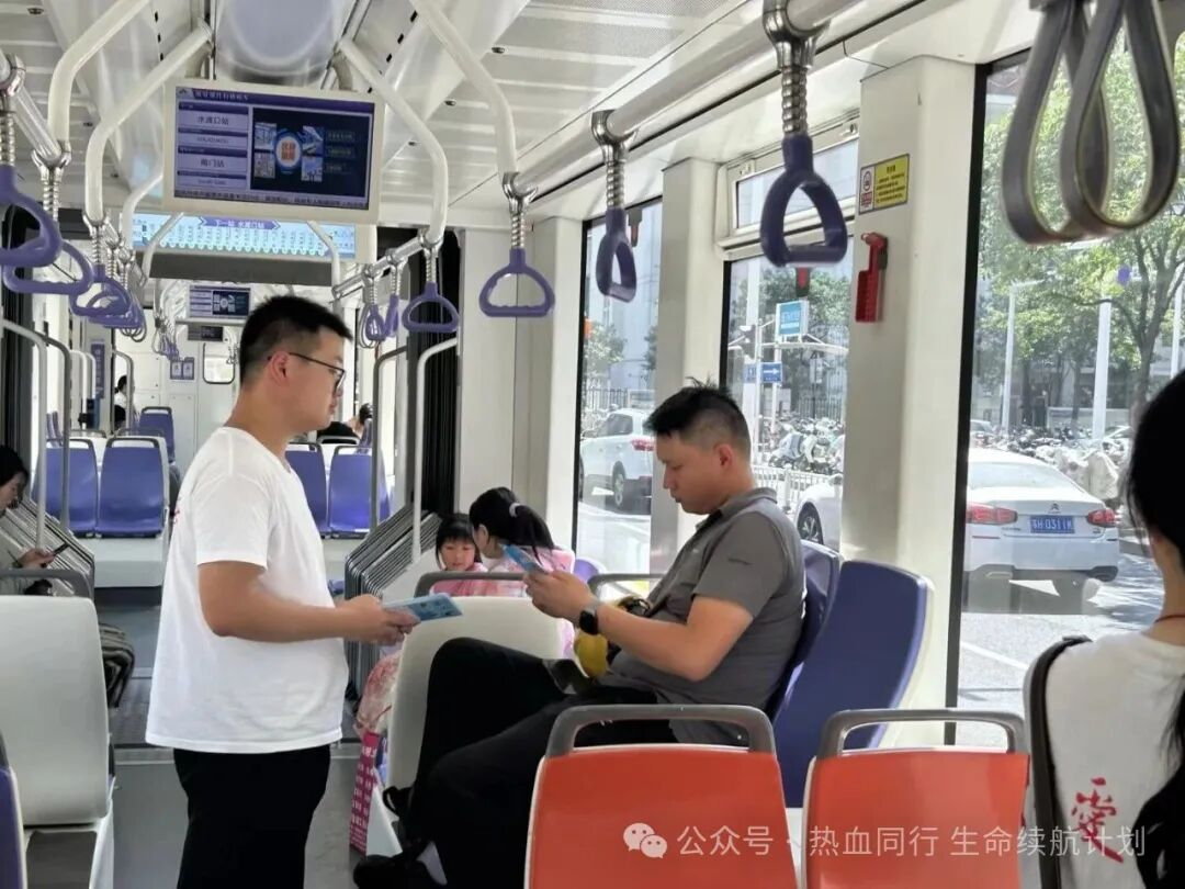 他们化身“移动的宣传站”,以轻轨为舟,承载着爱心启航。车厢内,志愿者们手持宣传册和自制的献血知识问答小道具,热情洋溢地向乘客们介绍无偿献血的意义、流程和注意事项,耐心解答疑问,消除误解。一句句真诚的讲解,一张张温暖的笑脸,让公益的种子在飞驰的车厢中播撒。