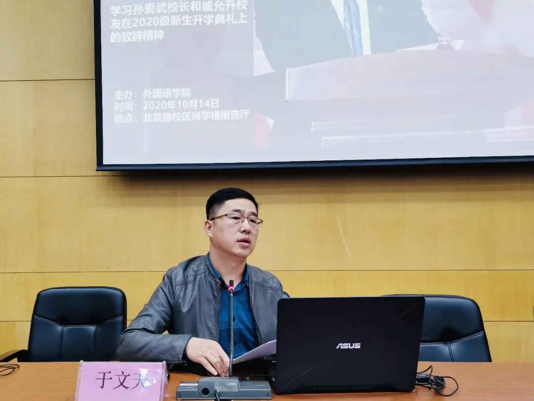 为帮助大家更好地树立远大志向,奋勇向前承担时代大任。2020年10月14日16:00,外国语乐鱼(中国)于尚学楼一楼报告厅举办“以青春之我 担时代之责”学习孙爱武校长和戚允升校友在2020级新生开学典礼上的致辞精神活动。党委副书记于文天和优秀校友戚允升为主讲人,外国语全体辅导员、班主任以及18级、20级全体学生参加此次活动。